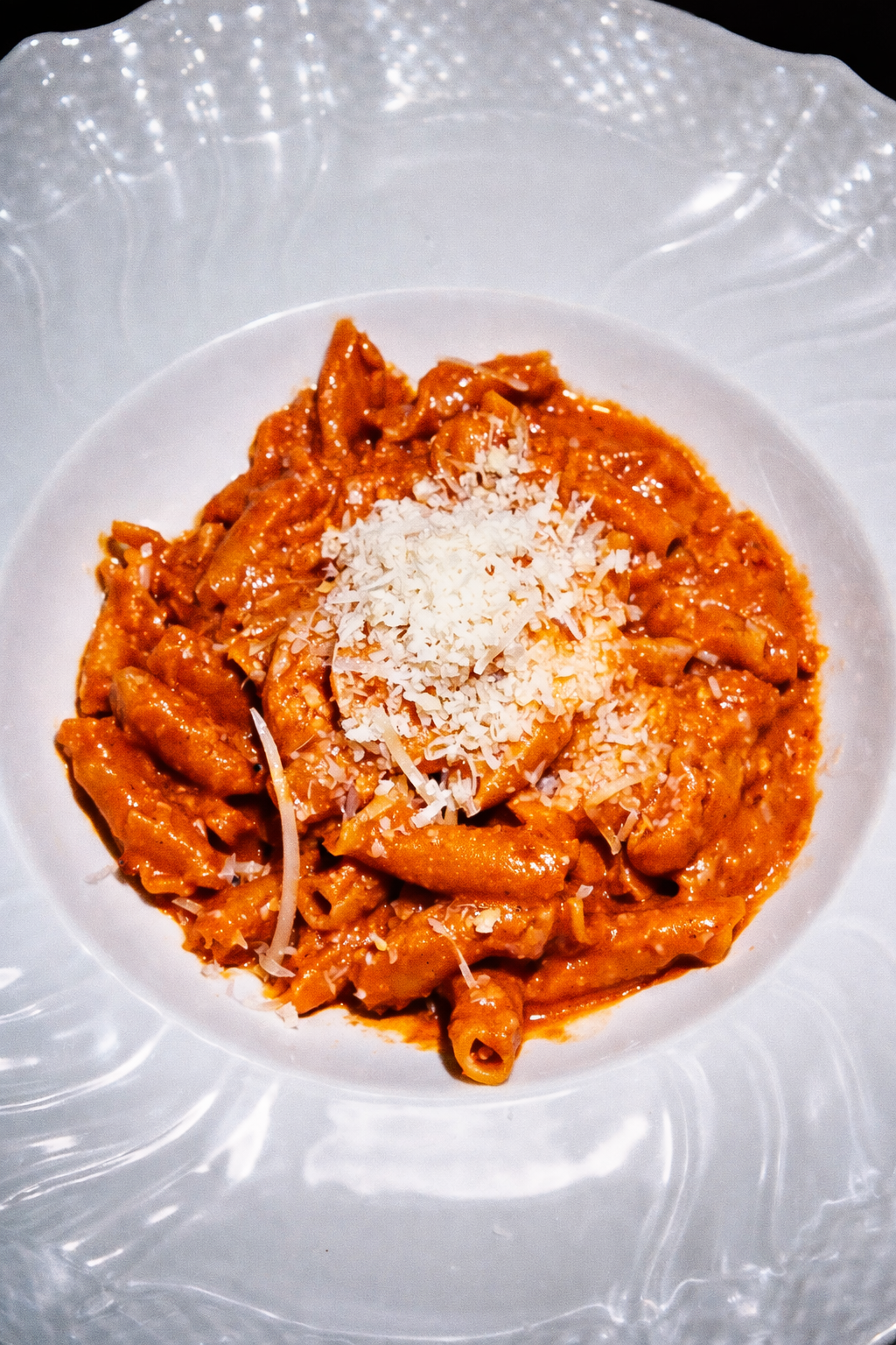 We ordered the Campanelle Alla Vodka with Lobster. What makes it notable is that this is a dish you might find at one of the 50 surrounding Italian haunts in this part of town — but it’s different. They have taken the art of a cream red sauce and elevated it, conceptualized it, edified it, in a whole new way. The flavor sticks, allows for some kick without being spicy. Palette profile that amplifies the (extremely fresh) lobster without overtaking it. Pasta cooked to perfection…honestly one of the best of it’s kind.
